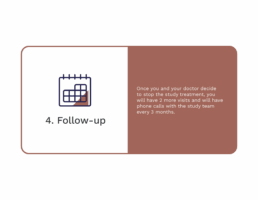 Once you and your doctor decide to stop the study treatment, you will have 2 more visits and will have phone calls with the study team every 3 months.