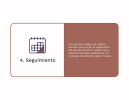 Una vez que usted y su médico decidan interrumpir el tratamiento del estudio, tendrá 2 visitas más y mantendrá llamadas telefónicas con el equipo del estudio cada 3 meses.