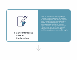 Antes de você decidir se quer participar, a equipe do estudo analisará os detalhes do estudo com você. Isso incluirá possíveis riscos e benefícios e o que você poderá esperar se decidir participar. Se você decidir participar, pediremos que assine um Termo de Consentimento Livre e Esclarecido. Isso confirmará que você entende o estudo e está disposto(a) a participar para determinar se você é elegível.