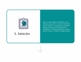 Pentru a afla dacă vă calificați, veți efectua cel puțin 1 vizită la centrul de studiu pentru a răspunde la întrebări despre starea dumneavoastră de sănătate și medicamentele pe care le luați și pentru a efectua câteva teste.