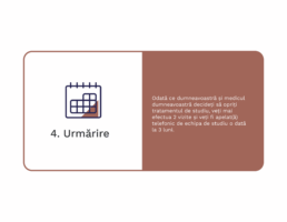 Odată ce dumneavoastră și medicul dumneavoastră decideți să opriți tratamentul de studiu, veți mai efectua 2 vizite și veți fi apelat(ă) telefonic de echipa de studiu o dată la 3 luni.